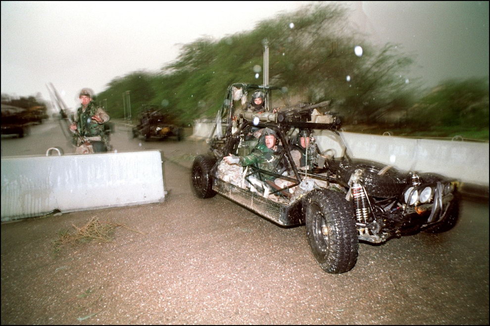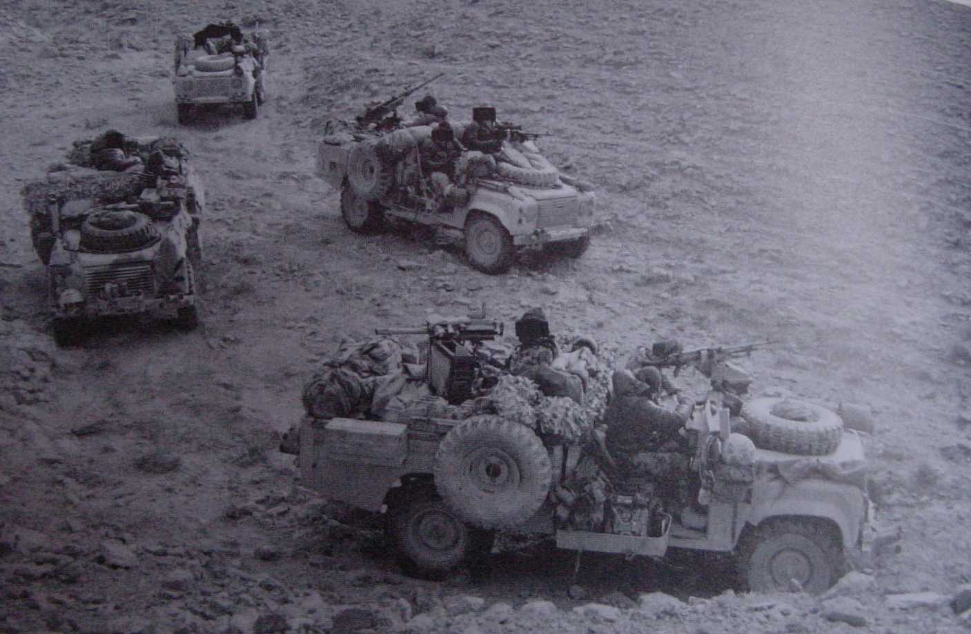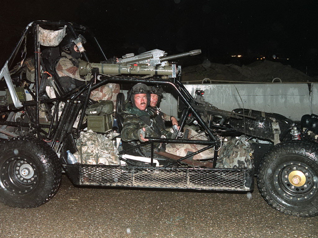 在“沙漠风暴”期间深入伊拉克境内侦察“飞毛腿”行踪的SAS小队,陆游者上安装了MK19及其他武器