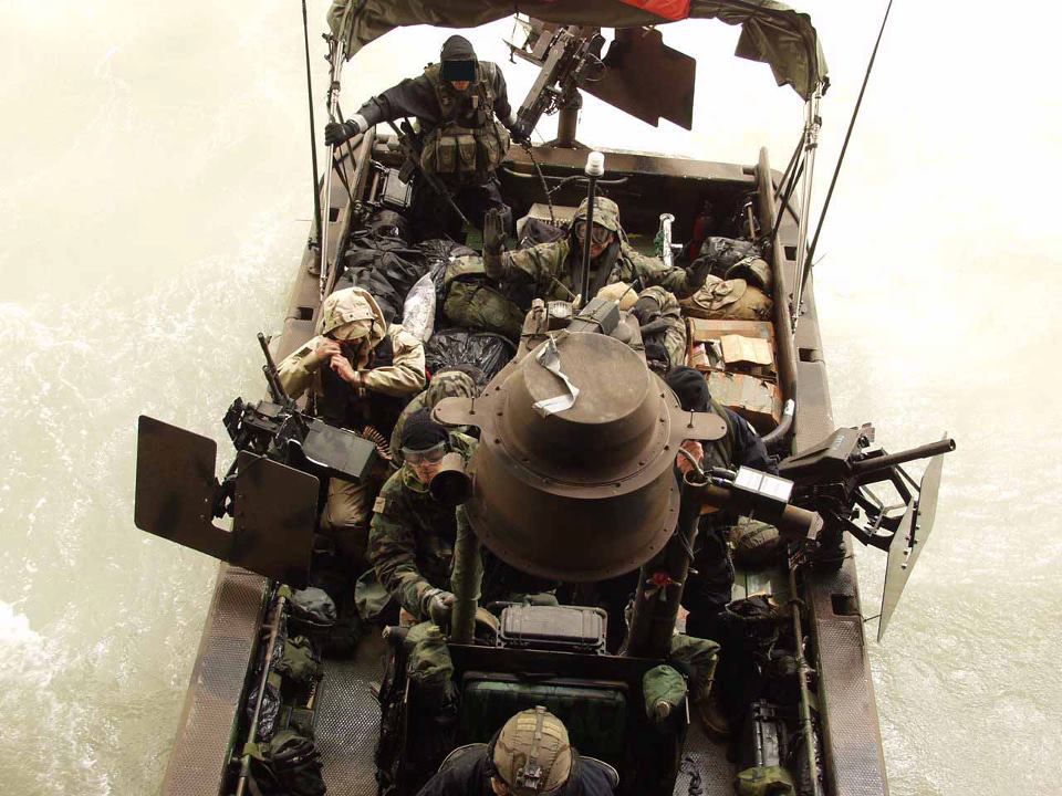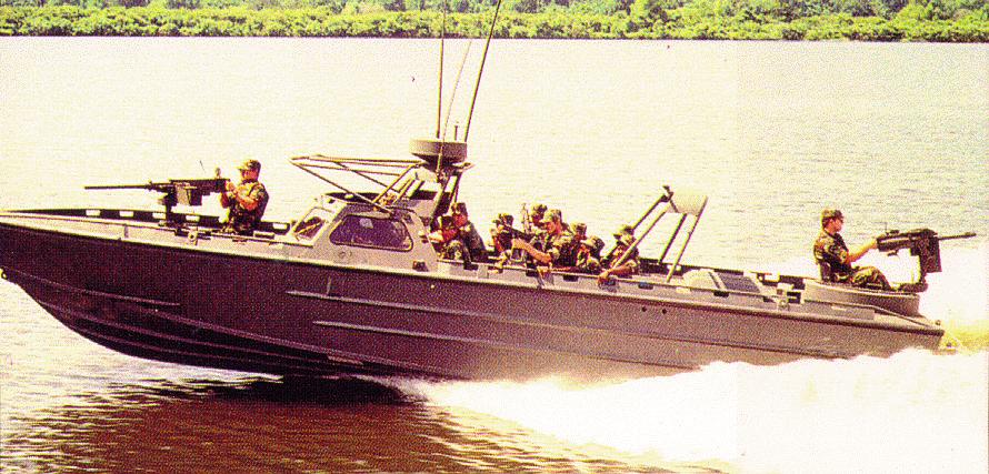 架在河岸攻击艇RAC(Riverine Assault Craft)艇尾的Mk19 mod3