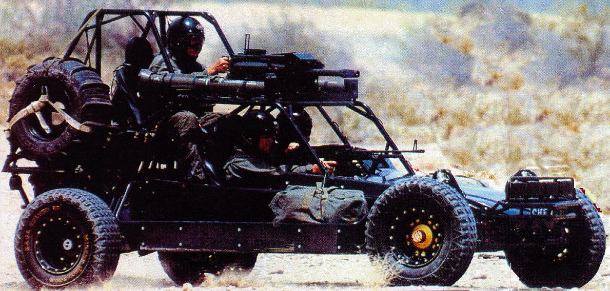 海豹突击队大量装备的一种FAV,通常称为沙漠巡逻车(DPV),是Chenowth公司的“蝎子”,这种车常常配备Mk19自动榴弹发射器