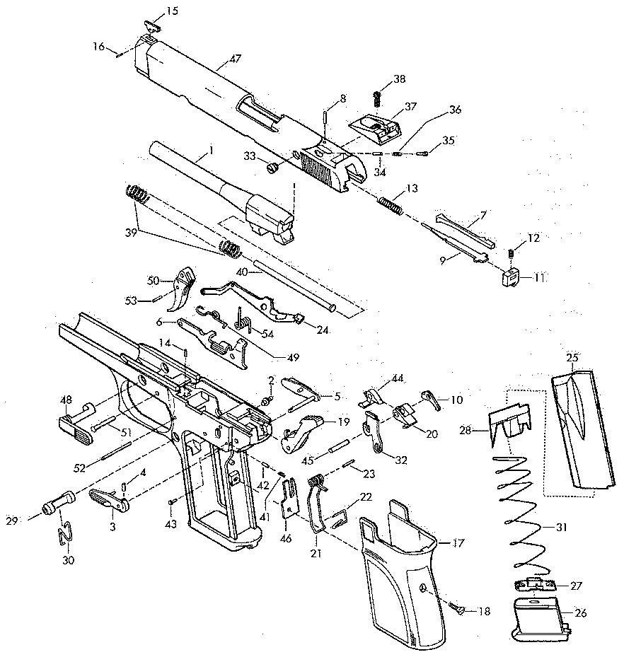 此有还有两种变形枪,分别是只能像转轮手枪一样纯双动的BRM型(Browning Revolver Mode勃朗宁转轮手枪型),和只能单/双动的BPM-D型(Browning Pistol Mode Decocker勃朗宁待击解脱型),这两种型号在套筒上都没有击发方式转换开关,前者也没有手动保险和待击解脱杆,后者则和BDM型一样有一个手动保险/待击解脱杆,除了有保险作用,还可释放待击状态下的击锤。释放击锤后,第一发为双动,然后就变成单动形式。