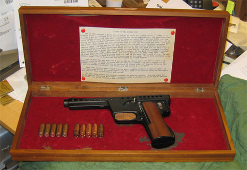 由于火箭弹本身的缺陷,装填又麻烦,再加上弹药很贵,所以一直不受欢迎。Gyrojet火箭枪在1969年停产,大约一共只生产了一千把左右。到了今天,这种稀罕的手枪反倒成了收藏家的追棒目标。一把Gyrojet手枪可能卖到超过一千美元,这还不算贵,更贵的是弹药,一发可能要超过100美元,糟糕的是,往往是有价没货。