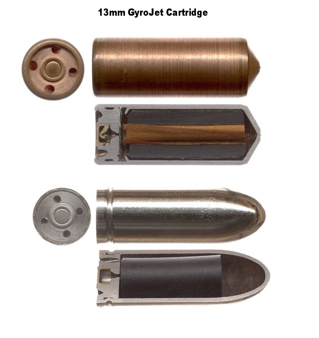 Gyrojet手枪最主要的问题是:a.侵彻力差,穿不透距枪口13mm处的用瓦楞纸板作衬背的单层棉布;b.精度差,在距枪口9米处的射弹散布直径达285mm。