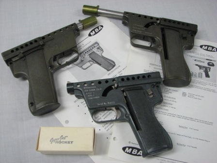 由于美国军方不愿意接受Gyrojet火箭枪,所以MBA公司在1965年开始在民用市场销售。最初的Gyrojet Mark I型为.51(13mm)口径的火箭,这种弹药很贵。但在1968年,美国的枪支管制法的创造了一个新的法律术语——“破坏性装置”(destructive device)。根据新的法律,任何武器发射直径超过0.5英寸而且内部填充爆炸物的弹丸就被认为是破坏性装置,并必须获得许可并缴纳税款,注册的过程要几年,但在过渡期内,MBA研制了避开这条法律的Gyrojet Mark II型,发射.49(12mm)口径的火箭弹。