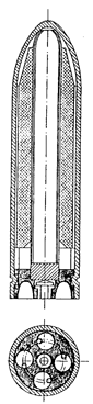 而精度问题就完全是原理上的缺陷。要提高精度,弹的重心必须始终在其纵轴上,而且在推进剂的整个燃烧过程中,重心也得保持在纵轴上。显然,这样高的加工精度是难以实现的。即便在火箭弹的飞行过程中,推力线沿弹的纵轴分布,但任何一个意外的变化都会使弹的飞行产生偏移。此外,来自喷孔的火药气体涡流也会产生侧向推力。这一切都会影响火箭弹丸的飞行稳定性。因此,火箭手枪的精度差是难克服的。