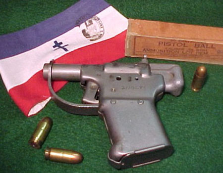 “解放者”(Liberator)手枪是一种非常简陋的单发滑膛手枪,这种手枪是二战期间美国的OSS(战略情报局,是CIA的前身)散发给被轴心国占领地区的抵抗组织所使用的简易武器。“解放者”手枪的正式名称是FP-45,即“.45口径信号枪”(Flare Projector Caliber .45)的缩写,“信号枪”这个名称估计也是来用迷惑敌方情报机构的。对于“解放者”手枪的起源和使用有许多误解。首先,“解放者”手枪长期以来都被认为是由OSS设计和生产的,但实际上OSS没有能力设计和生产大量的手枪,“解放者”是由美国陆军研制和监造,然后再交给OSS在敌占领区进行散播活动。另一个误解是此枪被大量空投在法国,事实上“解放者”手枪在法国只有很少的数量,大部分都是在菲律宾和中国使用。甚至枪的名字也受到争议,有一种传闻指“解放者”这名字只是在1944年6月公开OSS的武器目录时才有的,在这份“机密”目录中在这把枪的图片下面写着“解放者”。