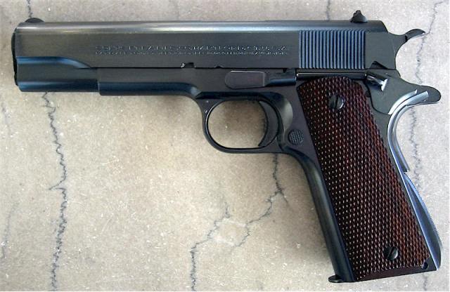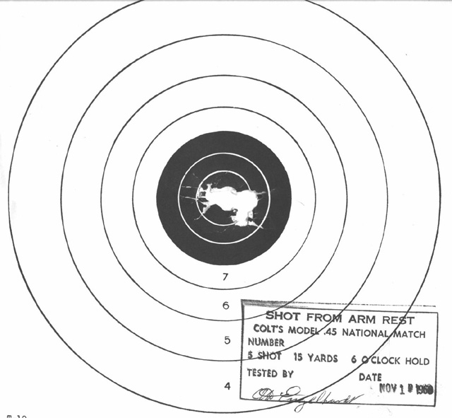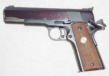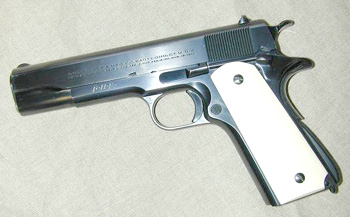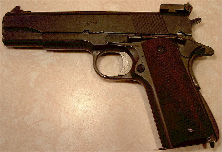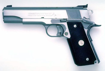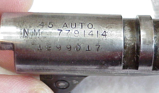 ![]() 柯尔特国家比赛型手枪的套筒前端也有NM标记 |