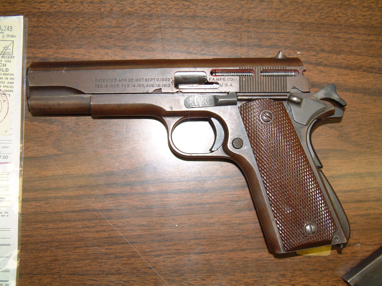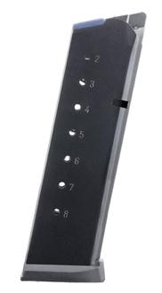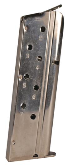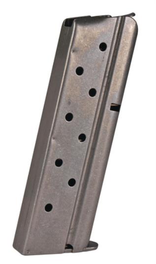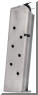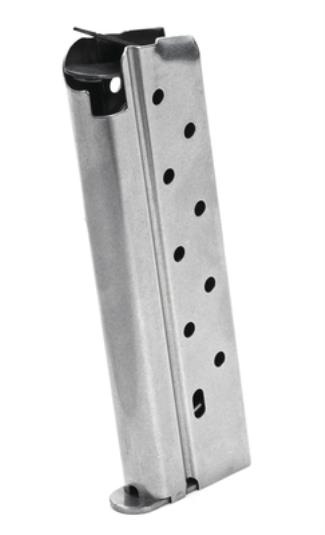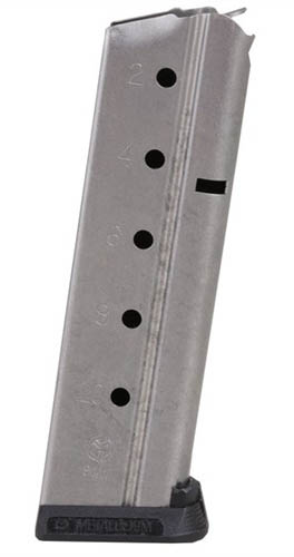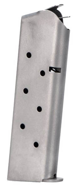 最初M1911的标准弹匣容量为7发单排结构,近些年由于材料技术的发展缩短了弹簧压缩后的长度,不少生产商业1911的厂家都有生产8发容量的标准弹匣,只比原来的7发弹匣长出一丁点,另外更长的10发或15发单排弹匣(双排1911的弹匣最少13发)。此外袖珍型早期使用较短的6发弹匣,同样在近年来缩短了弹簧后也出现了长度比标准7发弹匣稍短但仍然可以装7发.45弹的袖珍型弹匣。另外还有些公司生产了30发甚至50发的大容量弹鼓,可直接插入手枪使用,无需改动手枪任何部件。弹鼓靠螺旋弹簧驱动供弹。