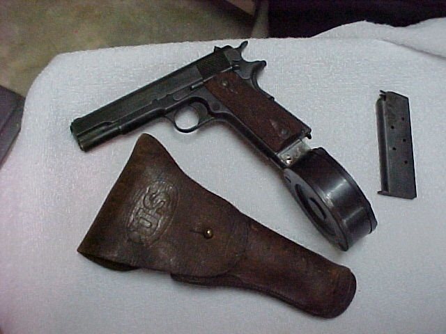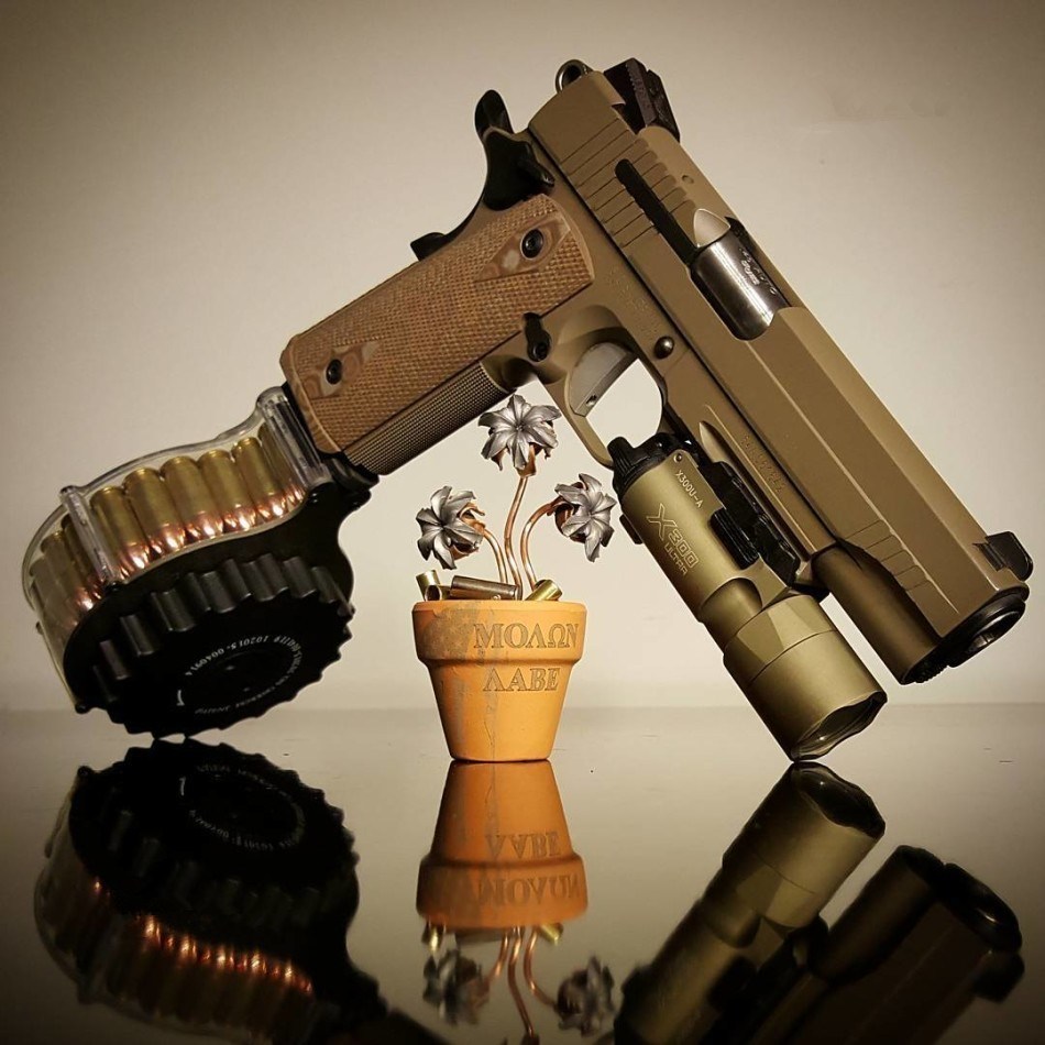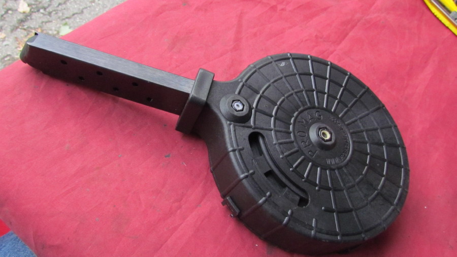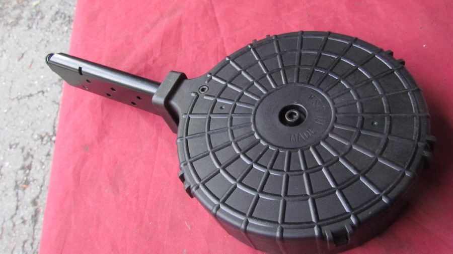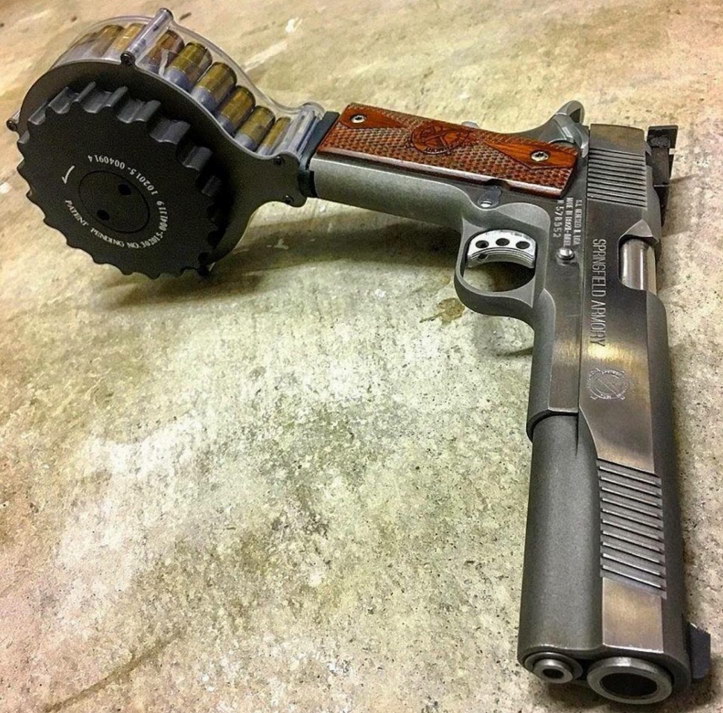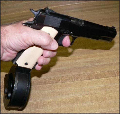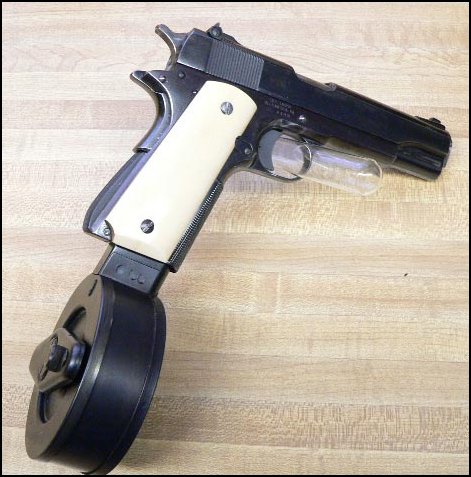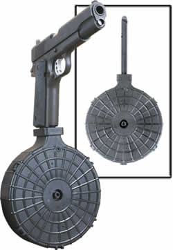 也有一些厂商生产用于1911的弹鼓,比如这是一种40发容量的.45口径塑料弹鼓