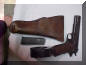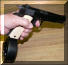 该枪有空仓挂机柄,当弹匣中枪弹已经打完,则托弹扳顶起空仓挂机,套筒复进时就会被空仓挂机挡在后方位置。此时若压下空仓挂机柄便可使套筒复进。