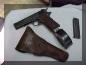 手动保险在底把尾部,早期的型号只在左侧有手动保险,现在有一些型号两侧都安装有手动保险。把手动保险机柄推到上方位置时,会锁住击锤和阻铁,同时,保险机进入套筒的缺口内,阻止套筒运动。该枪还有握把保险,当套筒已经复进到位,而且手动保险装定于“发射”位置时,只有手紧压握把保险并扣扳机才能击发。因为握把保险传动杆上的突齿转动扳机连杆之上,所以手扣扳机连杆扳机杆能充分后移,带动阻铁运转,解脱击锤,完成击发动作。若此时未压紧握把保险,则其传动杆上的凸齿便抵在扳机连杆上,阻止扳机连杆运动,故不能发生,另外击锤上还有一个半待发卡槽,它能使手枪在膛内有弹的情况下安全携带。如果有某种原因,阻铁自击锤的待发卡槽中意外滑脱,则阻铁会随之卡入半待发卡槽,使击锤无法打击击针由此避免发生“走火”。