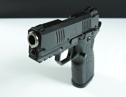 STI-Detonics MTX手枪是在1911式手枪的结构原理上采用了模块化设计,该枪可在同一个尺寸的底把上更换4种不同长度的枪管/套筒组件,而底把则有全尺寸型和紧凑型两种握把,握把造型据说是优化人机工程学的设计,握持的舒适性和控枪效果比传统1911握把的造型更佳。底把是由航空铝材制成,而套筒则是4340钢。击发机构也是模块化的,可以整体更换。全枪在外形上看起来就是一把科幻化了的1911。