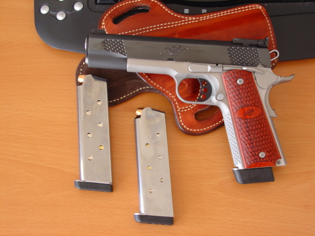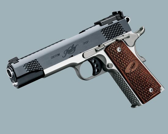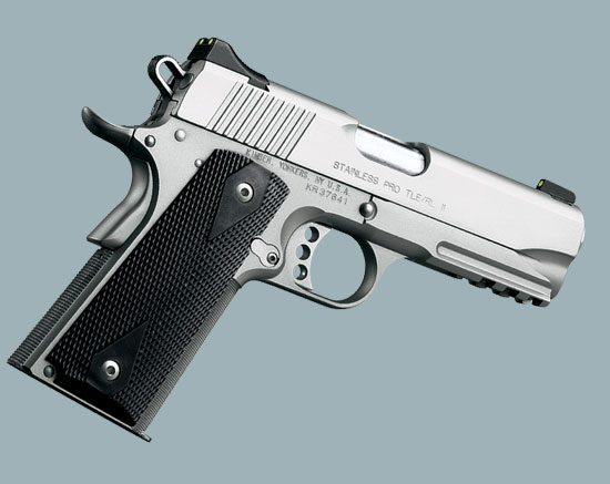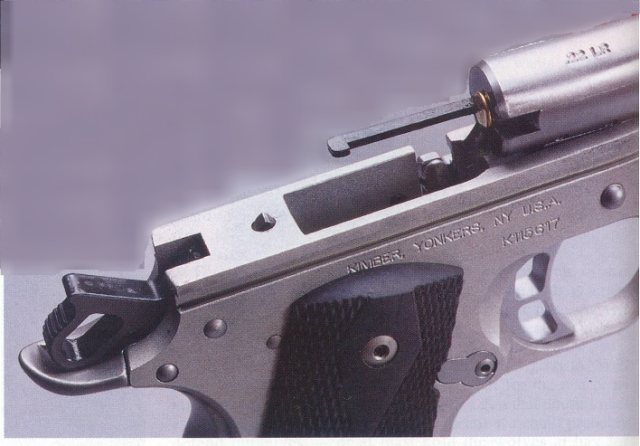 Kimber公司(国内有译为“金伯”)于1979年在纽约成立, 最初只是一家生产和销售.22LR口径步枪的小公司。1996年,该公司开始提供手枪定做业务,目前各种1911式定做手枪是该公司的拳头产品。Kimber的产品都是半手工生产的,产量低、价格高、但品质好,虽然有些人认为Kimber的1911式手枪只是比赛手枪的入门级,但也有些人认为 买一把普通的1911再调整成比赛级还不如直接买Kimber手枪来得便宜。LAPD SWAT长久以来一直是使用改装的政府型1911手枪,现在也改用Kimber的TLE II手枪。