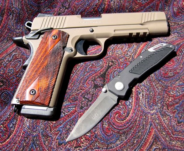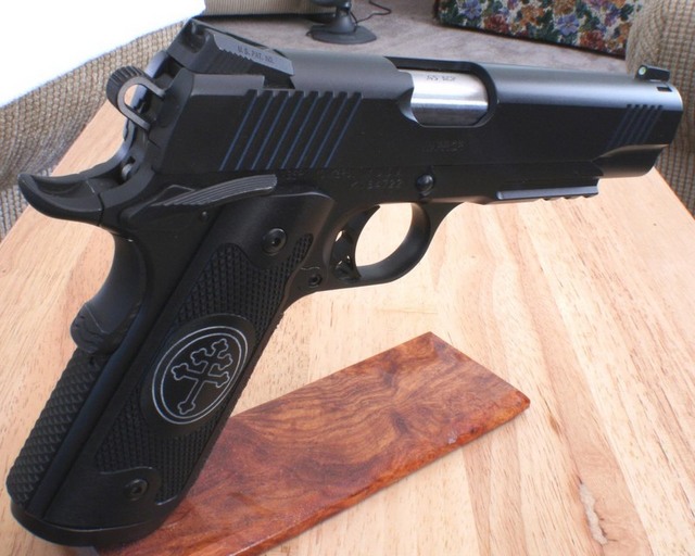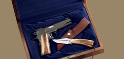 这款全尺寸型1911是礼品枪,一整套礼品还包括一把刀,并装在一个木盒里。