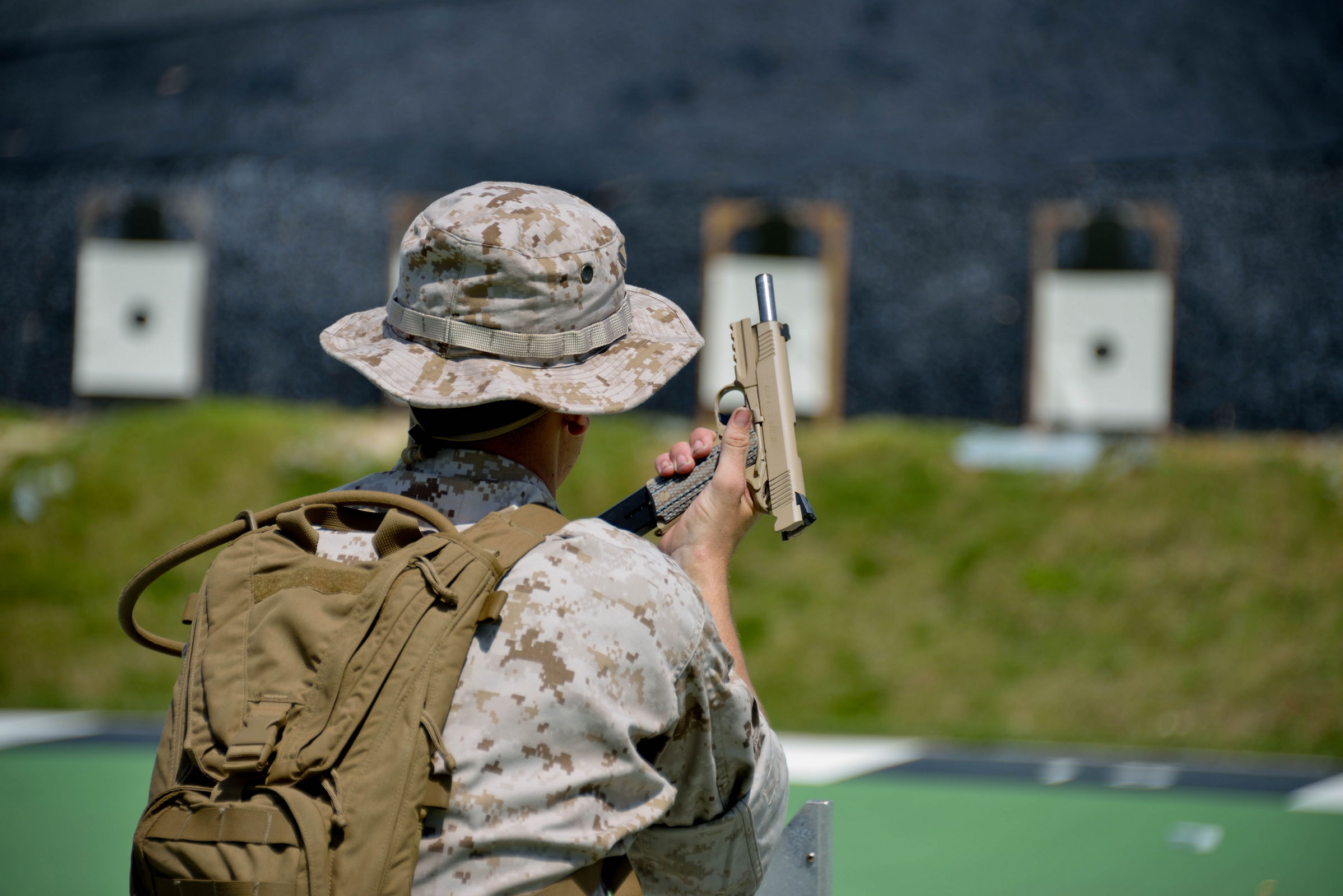 在2010年,海军陆战队正式发出招标,明确需要采用一种新的.45 ACP口径1911手枪。参与投标的分别柯尔特公司、春田公司和卡尔利帕德公司(Karl Lippard),三家厂商提供的都是增加了附件导轨的1911式手枪。最终在2012年7月19日,海军陆战队司令部宣布柯尔特的手枪中标,中标后的手枪被定型为“M45A1室内近战手枪”(Close Quarter Battle Pistol,简称CQBP),预计将采购12,000把。而柯尔特公司赢得第一份2,250万美元的合同,要求在5年内向FORCE RECON和MARSOC共交付4,036把手枪及配套附件和售后服务。