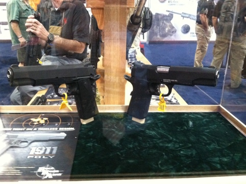 在2014年SHOT SHOW上的这一组图,由于水牌上写着的Poly,而在国内许多门户网站上误会成中国保利公司的1911,其实这个Poly是指聚合物,而非保利集团的Poly,这枪与中国也毫无关系