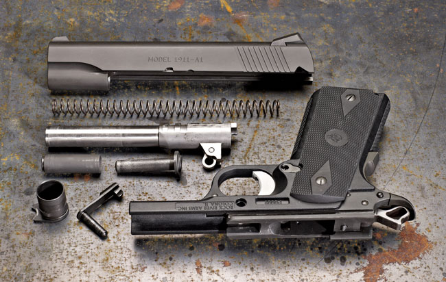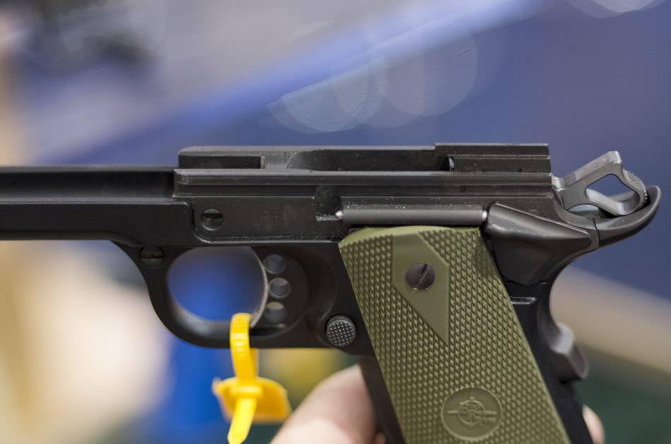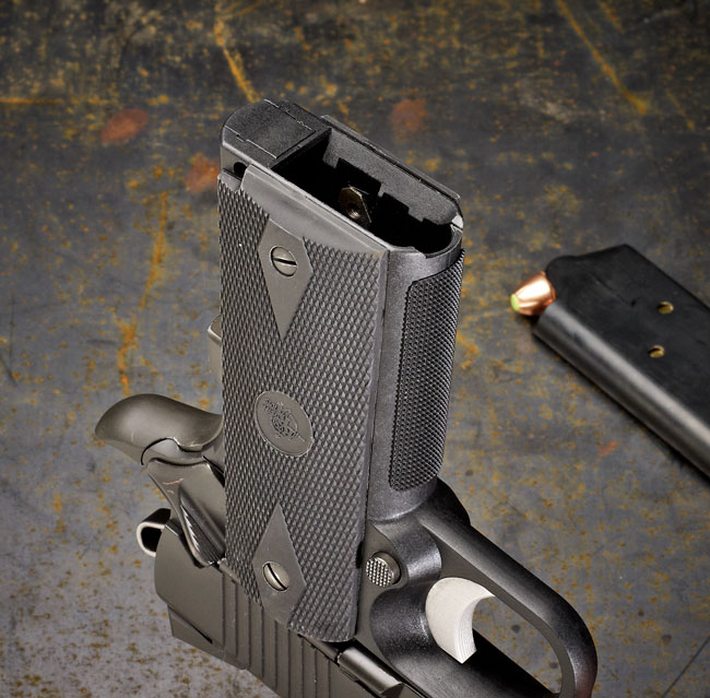 1911 Poly的底把形状和结构功与传统1911很相似,但这样一来,就只能使用单排弹匣,不过通用弹匣可能也是RRA公司的设计初衷之一
