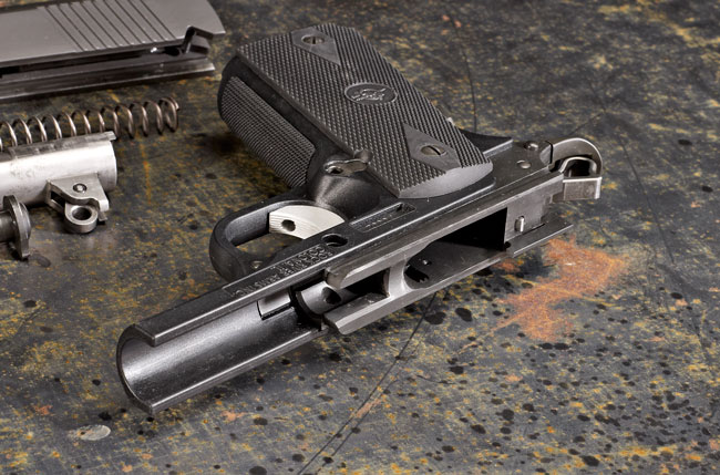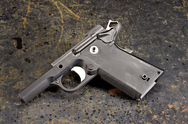 1911 Poly采用了全聚合物的底把,只有套筒导轨是钢制的,嵌在塑料底把内。在重量上,一把全尺寸的钢底把的1911接近重1.1kg,而1911 Poly则重928克。