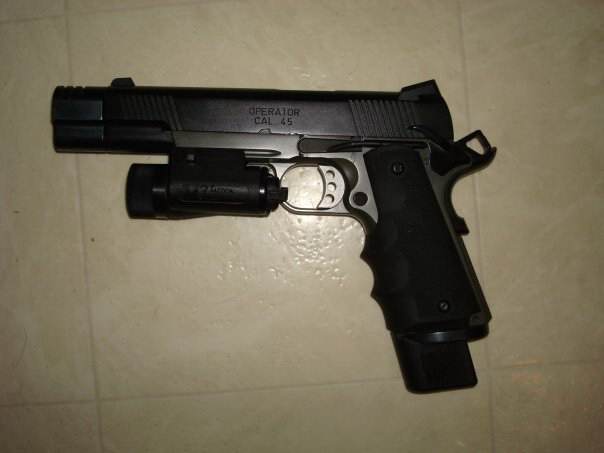 Operator型是春田公司第一种整合附件导轨的1911手枪,这是5英寸型