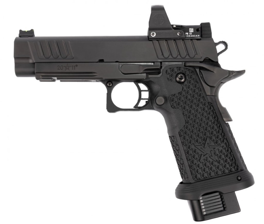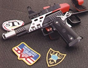 STI国际公司(STI International, Inc.)位于德克萨斯州,按照官方的解释,是一家生产竞赛、勤务和自卫用1911式手枪的整枪或部件的公司,其实是一家专门生产精密的比赛枪及相关配件的公司。STI公司的产品是最著名的就是组合式底把,这种底把的专利由STI公司和SVI公司共同享有。(这么说是因为下握把和扳机护圈是用纤维增强塑料,底把的上部分是独立的金属,包括防尘盖和导轨)