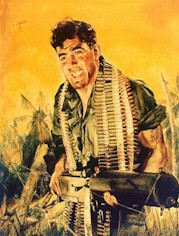 1942年10月,一个没有月色的晚上,在瓜达卡纳尔的丛林里,美国海军陆战队枪炮军士约翰·巴锡龙(John Basilone)独自一人在他的阵地上拖延一个连的日军企图通过Tenaru河,阻止了一个自杀式冲锋。他用一把柯尔特手枪和两挺机枪轮番射击,直到破晓增援来到时,有将近一百名日军尸体趴在他的阵地周围。因此巴锡龙成为二战中被授予荣誉勋章的第二个海军陆战队员。