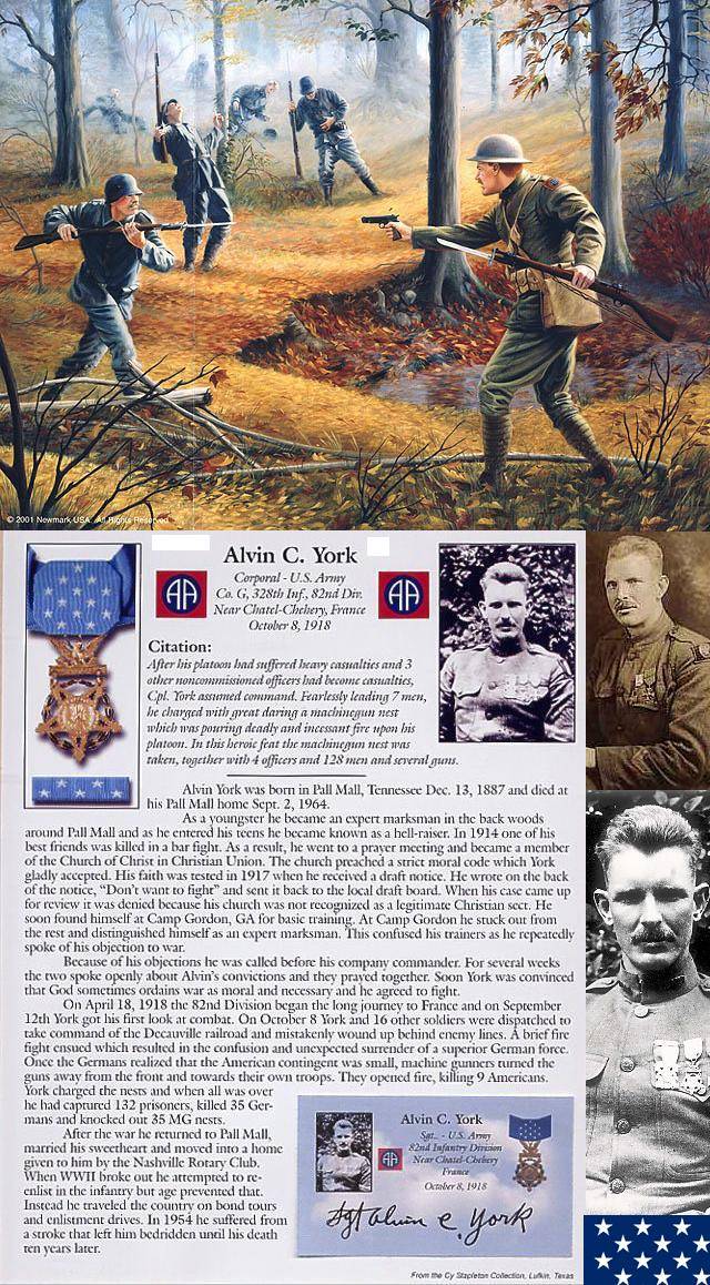 约克下士所在的部队是美国陆军第82步兵师第328步兵团,当时在马斯河的阿尔贡地区,位于223高地后面的铁路沿线。在1918年10月8日的清晨,该团正被德军机枪的火力所压制。包括约克在内的17名士兵被派遣到机枪的侧翼进行侦察,负责指挥的是约克的好朋友兼上司伯纳德·厄尔利(Bernard Early)军士。