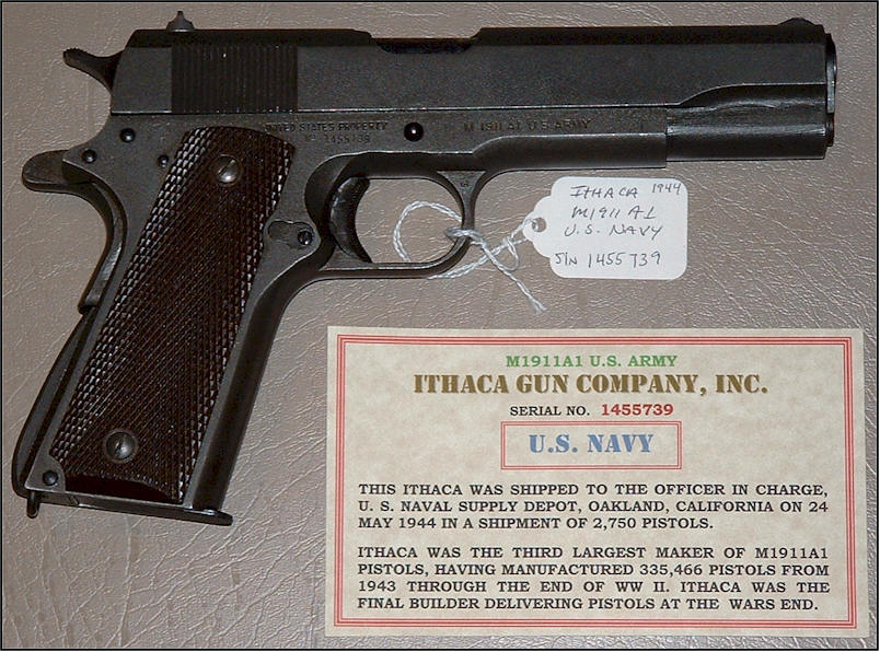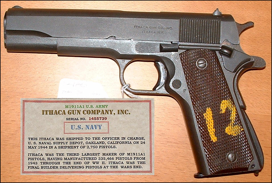 在二战期间,伊萨卡公司为美国陆军生产了370,000把M1911A1手枪,不过早在1919年时,伊萨卡也曾为英国军队生产过M1911手枪。