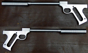 与此同时,贝尔电话实验室(Bell Telephone Laboratories)的工程师们研制了一种可安装在高标手枪上的消声器。这项设计的试验效果好多了,于是NDRC也和贝尔电话实验室签订了一份研究合同,由贝尔电话实验室生产110支无声手枪用于进一步的试验。其中包括66支柯尔特“森林人”和“比赛靶”(Match Target)手枪,44支分别是A型、B型、D型和E型等不同枪管长度的高标手枪。这批试验武器在1943年10月正式开始交货。