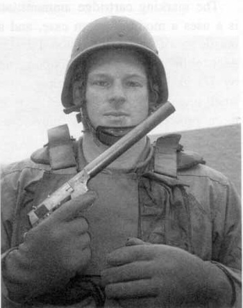 在此期间还发生了一个小插曲,在1944年7月突然有人注意到根据海牙公约第23e章节对达姆弹等扩张型弹头的限制,这意味着军事人员不能使用没有被甲的裸铅弹的轻武器,而.22 LR的普遍弹种却正是裸铅弹。于是此时已升为将军的多诺万便下令OSS当中的现役军人停止使用OSS无声手枪,除非研制了全被甲弹并配发使用,而文职人员则允许可以继续配发和使用这种武器。换句话说,如果一组OSS的特工需要进行一次秘密行动,那么他们当中的有人仍然属于现役军人,他就不能使用OSS无声手枪开火,而其中的“平民”特工却能使用OSS无声手枪向敌人射击。在实际行动当中有多少人会遵守这条官僚禁令呢?我这里没有统计数字,不过为了解决这个问题,OSS也立即要求研制专门为现役军人特工使用的全被甲结构的.22 LR弹。这项要求很快得到回应,到了1945年2月8日,OSS获得了20,000发全被甲结构的T-42型.22 LR弹供军人使用。不过,标准的雷明顿裸铅弹仍然被OSS的特工大量使用。