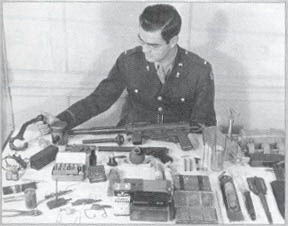 OSS各种武器装备的展示,摆在OSS手枪上面的M3A1微声冲锋枪的消声器也是OSS主持下研制的