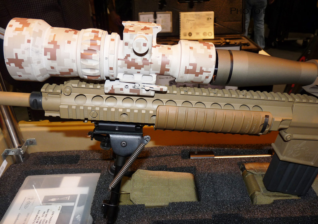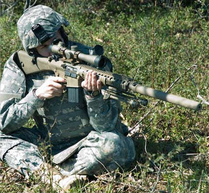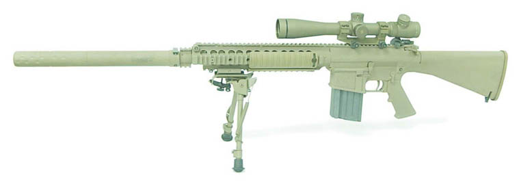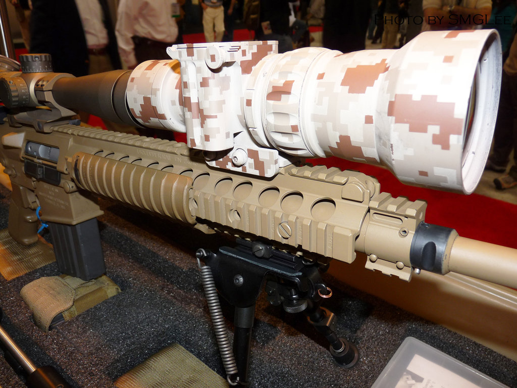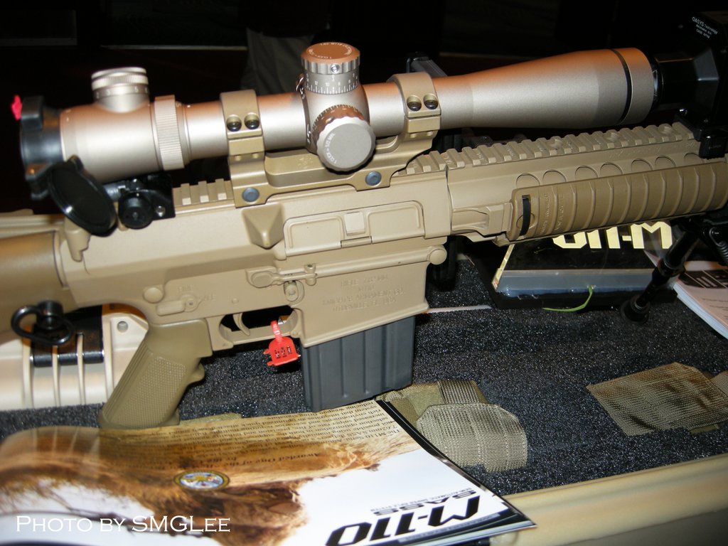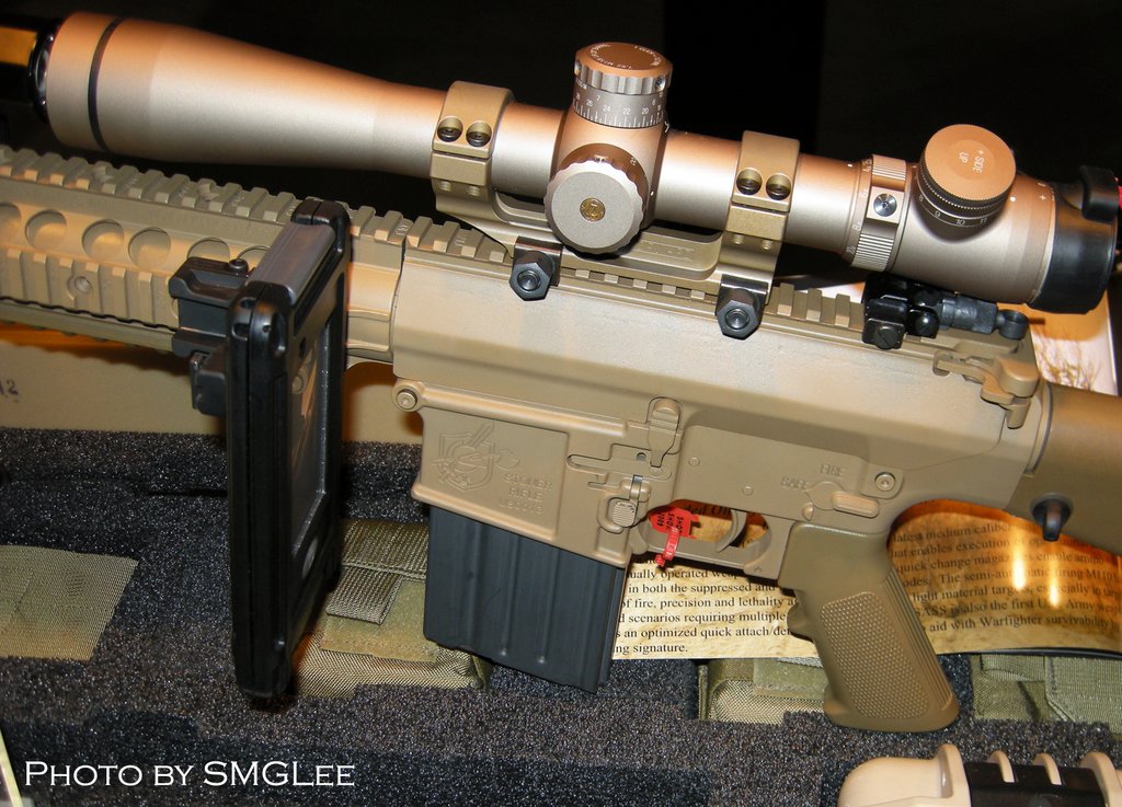 美国陆军一共找了5家承包商来参与进来,最后筛出两个方案进入最后竞争阶段的对比试验,有意思的是,最后筛剩的这两个方案均是以AR-10机构为基础的改进项目,分别为KAC公司的SR-XM110和雷明顿MPD/DPMS的AR-10T,后者是配20英寸中型比赛级枪管的阿玛莱特AR-10半自动步枪改进型(阿玛莱特也是5家承包商之一,但却没入围最后阶段),而KAC的SR-XM110则是改进自KAC公司原本为美国海军海豹突击队生产的Mk11 Mod0狙击步枪系统。