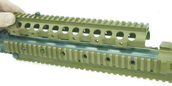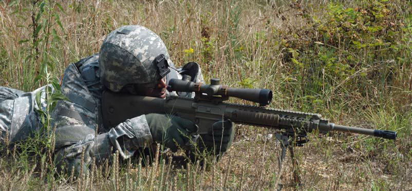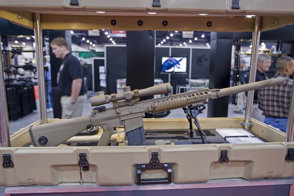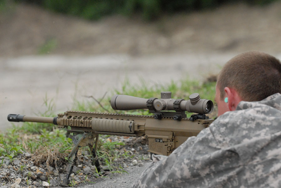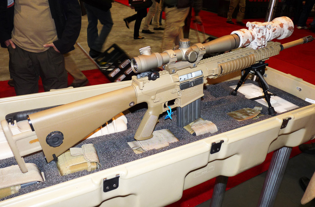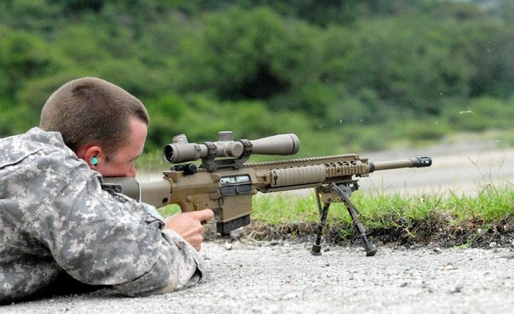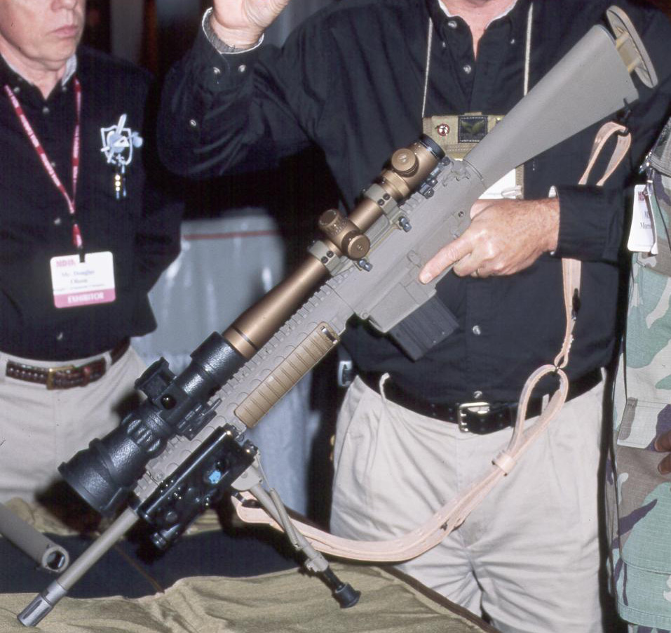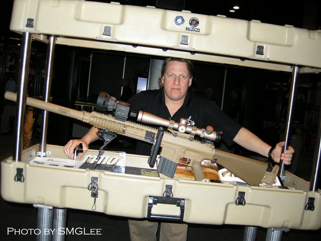 美国陆军一共找了5家承包商来参与进来,最后筛出两个方案进入最后竞争阶段的对比试验,有意思的是,最后筛剩的这两个方案均是以AR-10机构为基础的改进项目,分别为KAC公司的SR-XM110和雷明顿MPD/DPMS的AR-10T,后者是配20英寸中型比赛级枪管的阿玛莱特AR-10半自动步枪改进型(阿玛莱特也是5家承包商之一,但却没入围最后阶段),而KAC的SR-XM110则是改进自KAC公司原本为美国海军海豹突击队生产的Mk11 Mod0狙击步枪系统。
