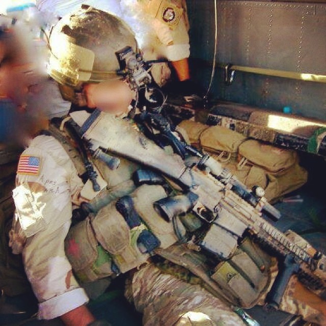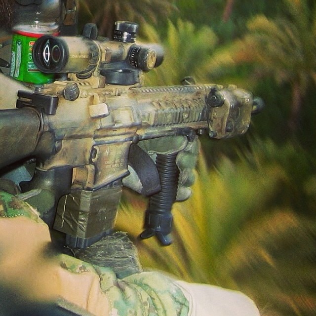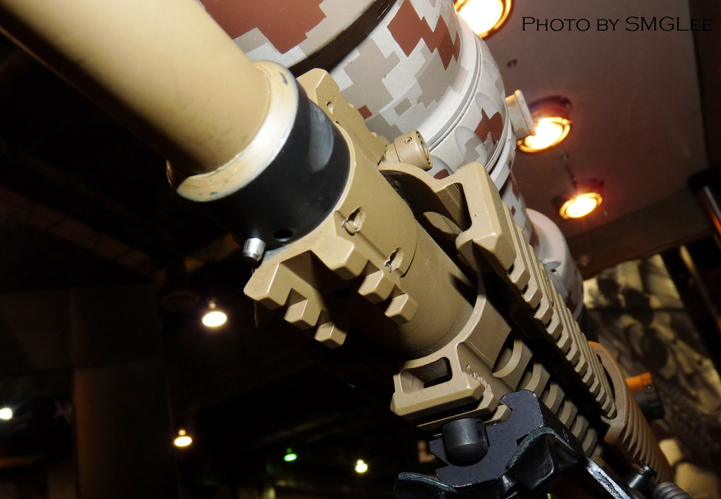 三角洲突击队的狙击手在直升机上使用的M110,安装低倍率宽视场的瞄准镜,并配上垂直前握把,显然不是用作远距离狙击武器的