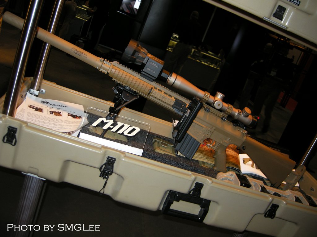 SHOT SHOW 2009上展出的M110在护木上安装了一个包有防撞壳的iPod Touch,这个PDA里面安装有弹道计算器软件