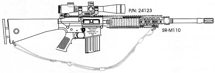 该步枪与Mk11 Mod0非常相似,主要区别是导轨系统、枪托和枪口装置:在Mk11 Mod0上使用的是KAC自由浮置式RAS,而在M110 SASS上使用的则是URX模块导轨系统。枪托是A2固定式造型但长度可调整,最短能缩至A1一样长;另外M110 SASS的枪管上还带有消焰器,同样能安装改进的QD消声器。另外M16系统在安装消声器后,枪机和机框积碳的现象会更严重,射击时火药气体还会从拉机柄的隙缝处溢出而扑向射手的眼睛,而干扰射手的视线,所以M110也使用了KAC公司研制的有气体偏流作用的拉机柄,使从拉机柄槽处溢出的气体不会打到射手的面上。但即使如此,枪机积碳是不可避免的,在连续射击几发后就会影响到动作可靠性和射击精度,而其他竞选型号都有气体调节器,可以避免这个问题。对于为什么会选中一支有缺陷的枪,有些相当有趣的猜测。比如有些传说中说KAC每年都找有影响力的退体将军开恳谈会,然后奉上诚意金,然后这些退休将军去影响管采购的部门等等。