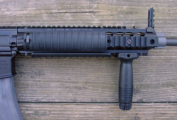 由于是民用型,尤其是推出时是在AWB94生效期间,因此采用固定枪托,配套5发弹匣,并用16英寸枪管和假消焰器(排气孔是假的)。