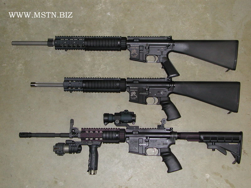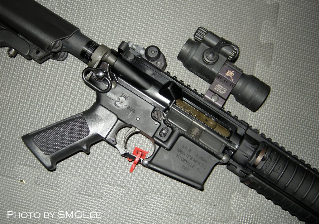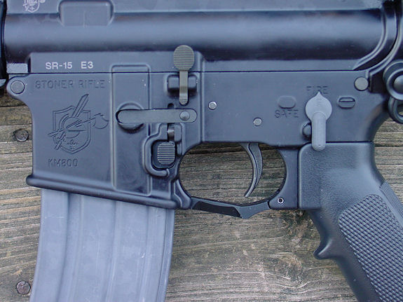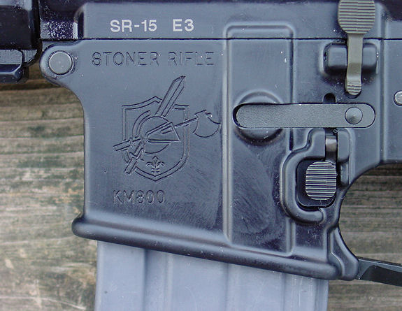 SR-15是KAC/KMC生产的AR-15商业型的名称,名称是“AR-15斯通纳步枪”之意,是SR-16的民用型,,虽然这名称看起来像SR-25的缩小口径型,但使用典型的M16式机匣。其中分为20英寸枪管的SR-15 M5和16英寸枪管的SR-15 M4,另外还有一种采用20英寸重型枪管的比赛型。由于是面向民用市场,因此SR-15只能半自动射击。