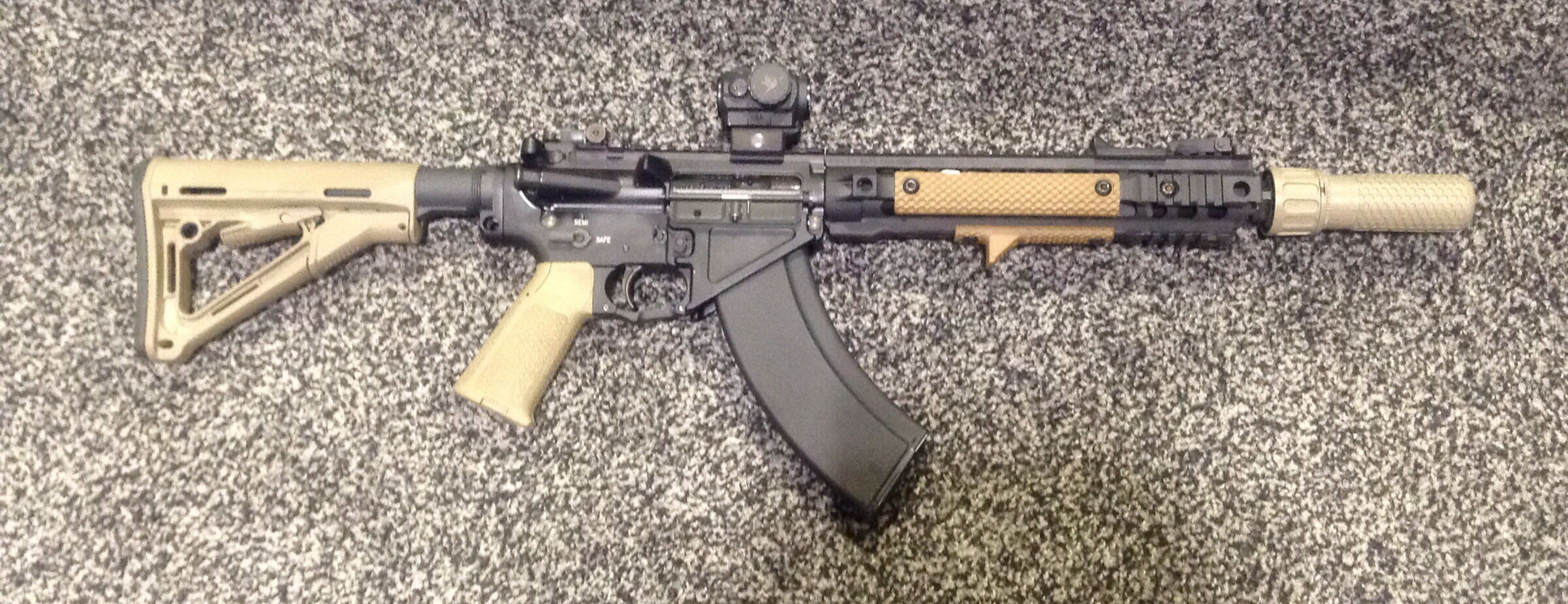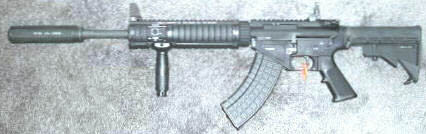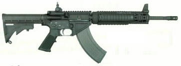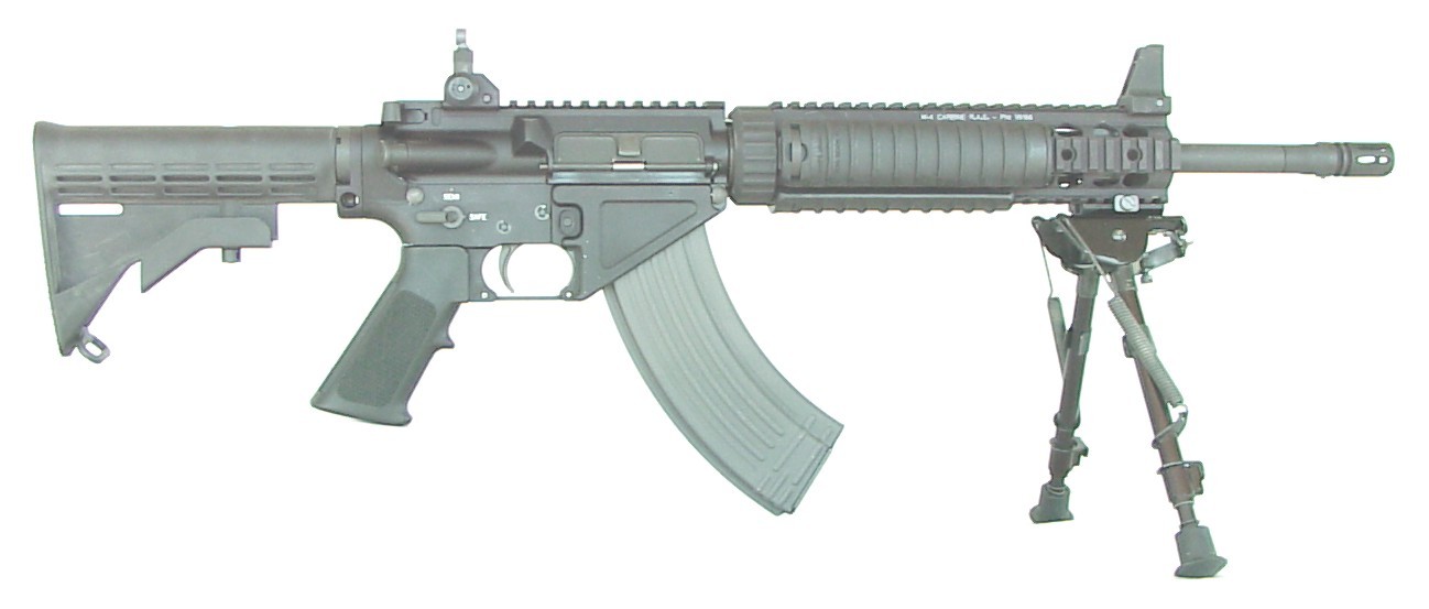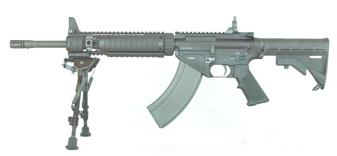 SR-47,意思是“使用AK-47弹药和弹匣的斯通纳步枪(Stoner Rifle)”,这是一种发射俄制7.62×39mm步枪弹并使用AK弹匣的M4A1卡宾枪。其实发射7.62×39mm步枪弹的M16式步枪并不新鲜,由于7.62×39mm步枪弹的价格便宜,有一定的用户群,再加上美国佬玩枪是玩得无所不“变”其极,因此许多生产M16式步枪的厂家都生产有发射7.62×39mm步枪弹的M16式步枪。 而阿玛莱特也在很早的时候就尝试过7.62×39mm口径的AR-10,甚至也是直接使用AK47弹匣的,这样就方便了在越南的美国特种兵可以直接使用缴获的越共弹药。