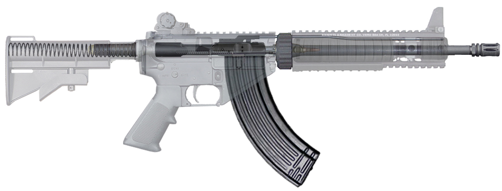 然而,SR-47计划很快就没了下文。据说在试验中暴露出来的缺点主要有两方面:一是各式AK弹匣的生产公差太大,用在不同型的AK上没问题,但用在M16式设计步枪的步枪上就出现很大的差异,有些弹匣很正常,另一些弹匣装上后却经常出现供弹故障。二是7.62×39mm弹的差异性也很大,有些弹的发射药太“脏”,结果用在M16式的直接导气式系统上就出问题了。