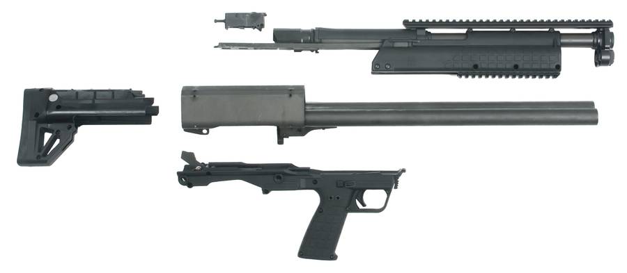 由于是采用无托结构,虽然枪管长18.5英寸,但全枪长只有26英寸。这样的枪管长度附合美国对普通民用霰弹枪的管制,除了某些限制容弹量的地区外,这样短的霰弹枪倒是很适合藏在枕头底用作居家自卫。
