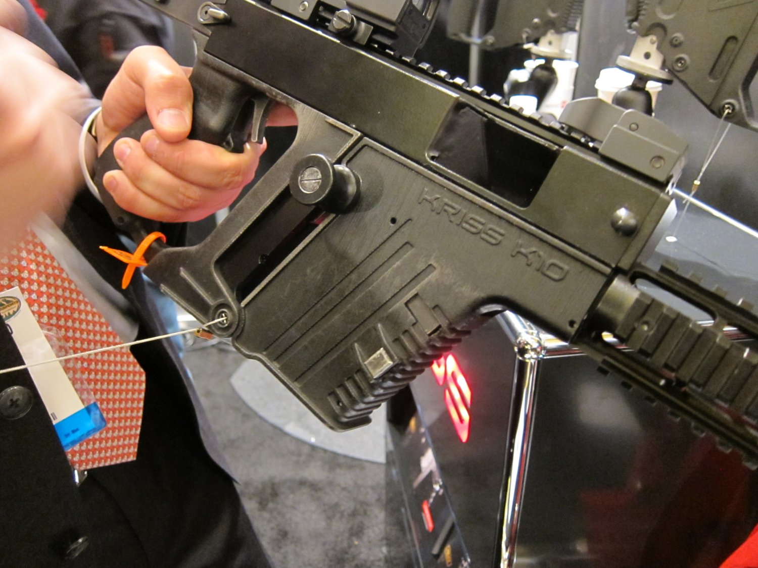 在2013年的SHOT SHOW上,所展出的KRISS K10在拉机柄、快慢机、枪托等细节又有了改变,同时还展出了KRISS K10的长枪管、固定枪托的民用半自动卡宾枪型。