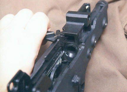 枪机在闭锁(左)和开锁(右)的状态