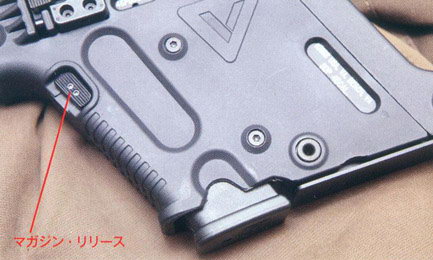 由于KRISS Vector通用GLOCK 21的弹匣,所以弹匣卡笋位置也和手枪一样
