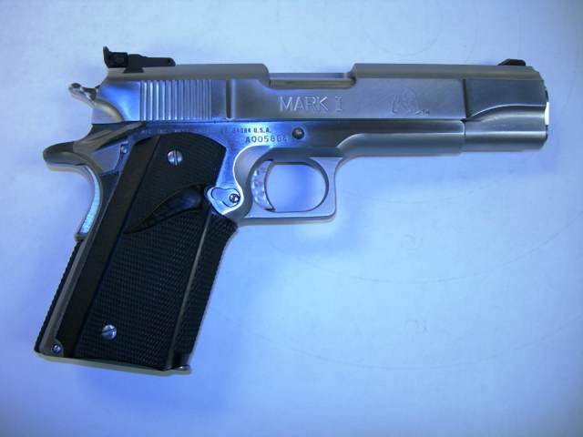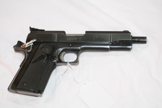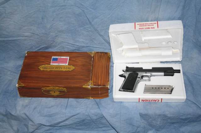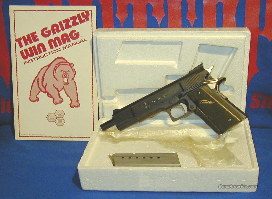 L.A.R.“灰熊”(L.A.R. Grizzly)手枪原本是由美国人派瑞·阿奈特(Perry Arnett)在1980年代初期构思、设计并申请专利的,他把该枪的生产和销售权卖给了L.A.R.公司(公司三位创办人名字的缩写:Larisch、Augat和Robinson)。该手枪基本上是1911式手枪的放大口径型,甚至有个别部件是可以通用的,只是L.A.R.“灰熊”手枪的威力比其他口径的1911都要大,其他方面基本相同,包括铰链式枪管短后坐开锁结构、击发机构、握把保险、单排弹匣等等。标准瞄具是靶枪式的,有完全可调的照门。另外“灰熊”手枪的枪管都比较长,标准型为6½英寸,还有更长的10英寸枪管。