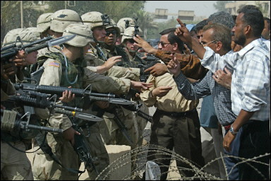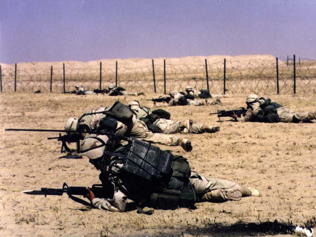 在伊拉克维持治安的美国陆军士兵装在M16上的M9刺刀