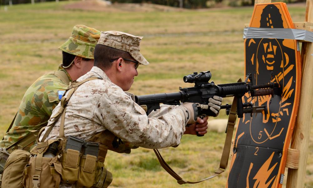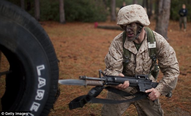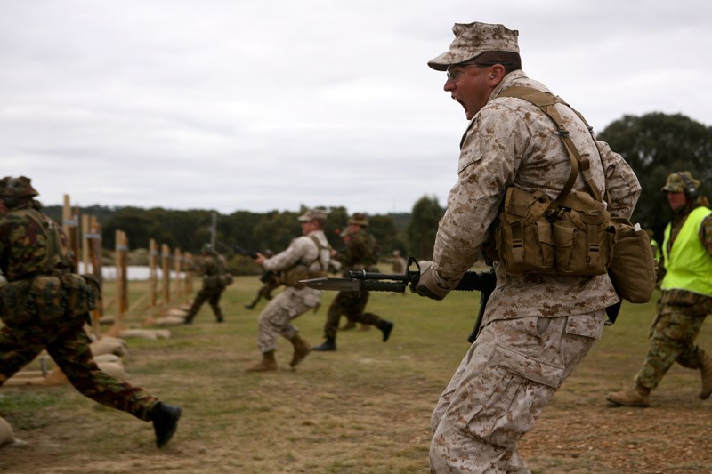 美国海军陆战队也使用使用橡胶刺刀进行训练