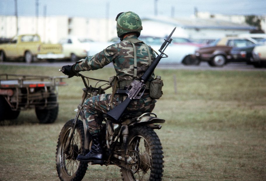 德浪河谷战役中的照片,这名美军士兵手上的XM16E1安装了M7刺刀