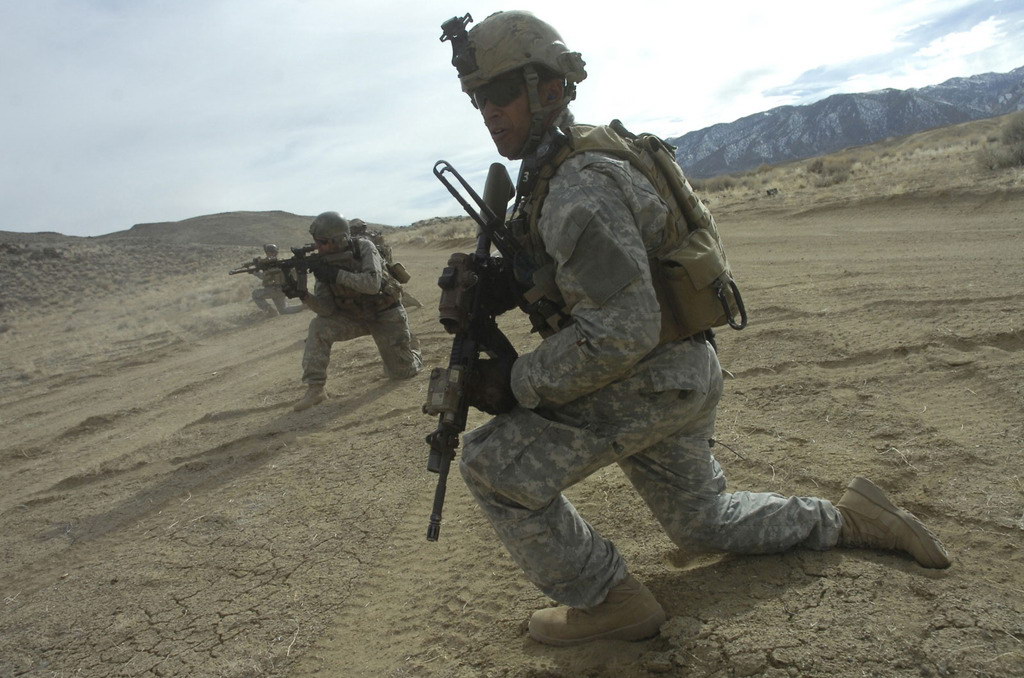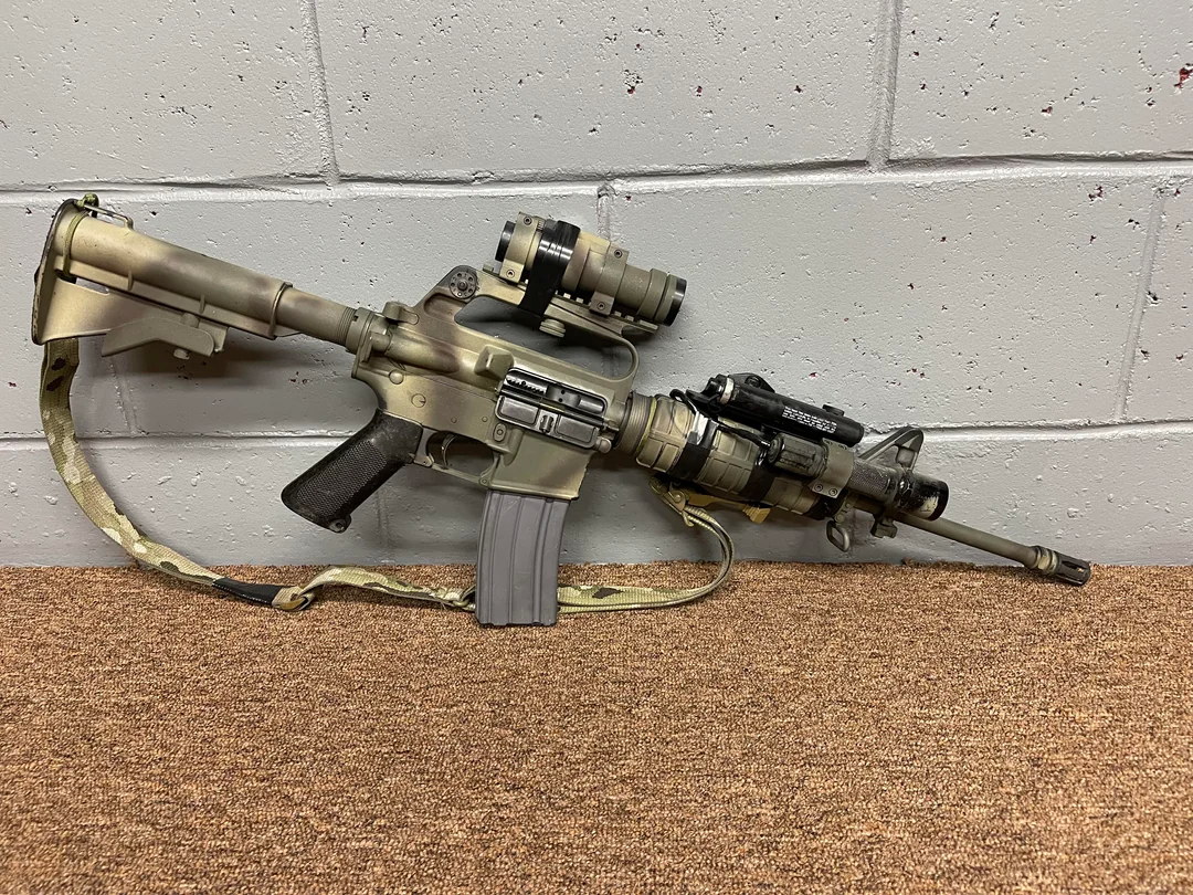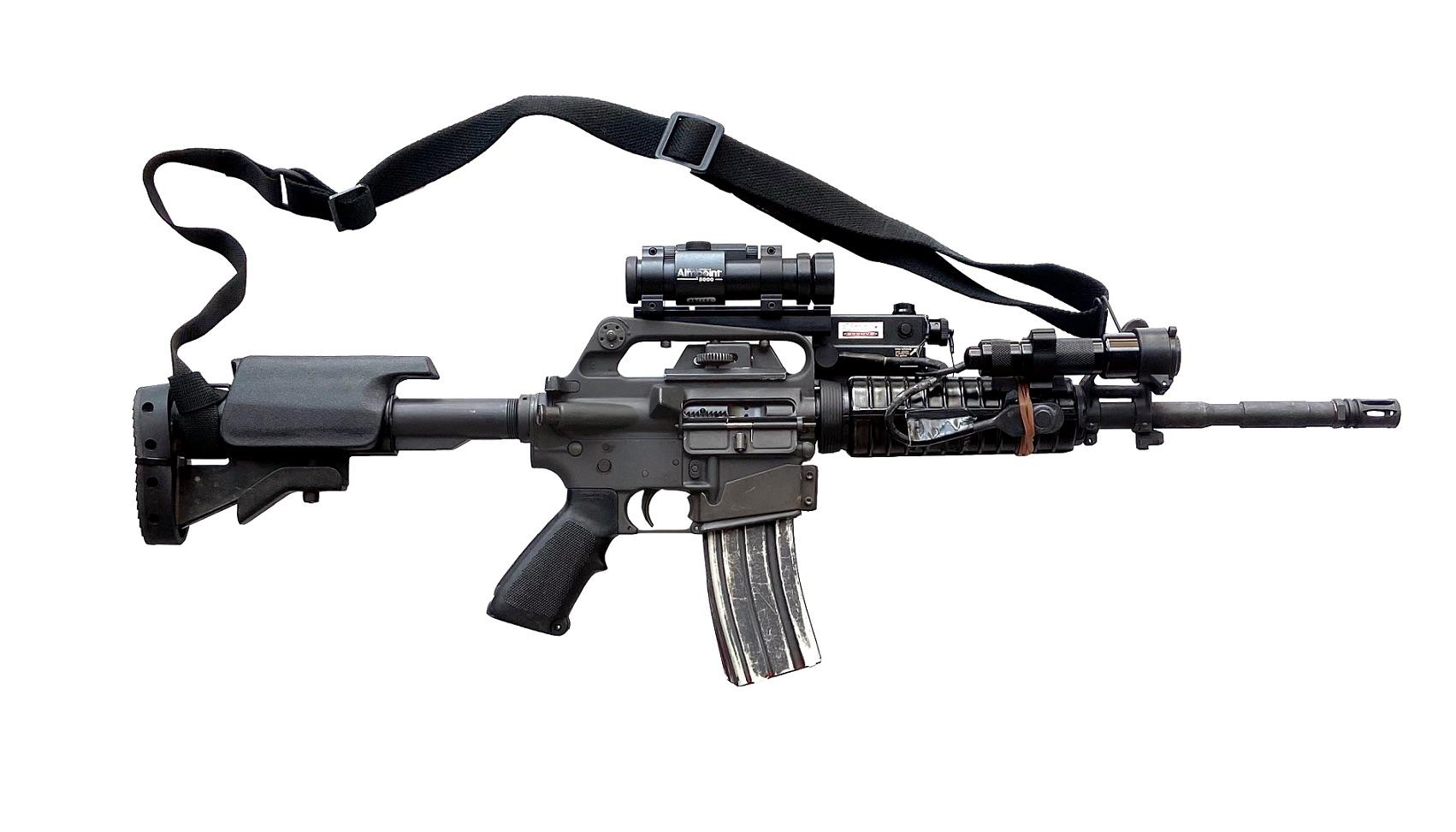1995年一位美国陆军特种部队(绿色贝雷帽)的M4A1,上面就安装了一个ITT的Night Ranger 4x夜视瞄准镜,而护木右侧则捆绑了一个GCP-2激光指示器