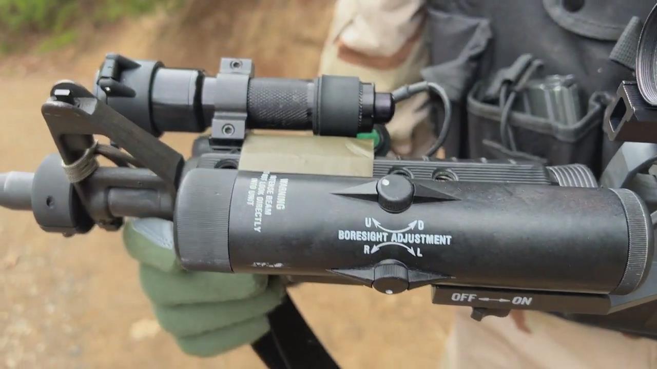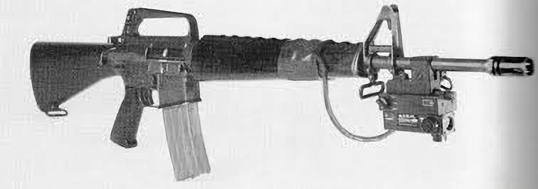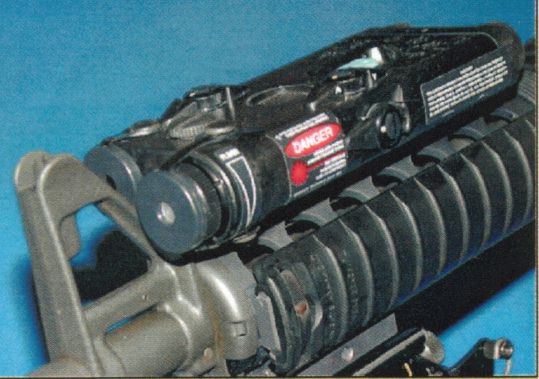 ![]() ![]() 此照片中可以看到连接在AN/PAQ-4C底部的枪管箍座 |