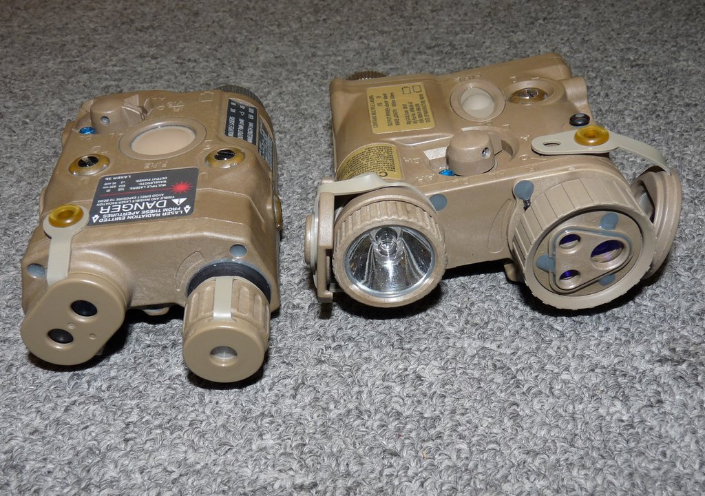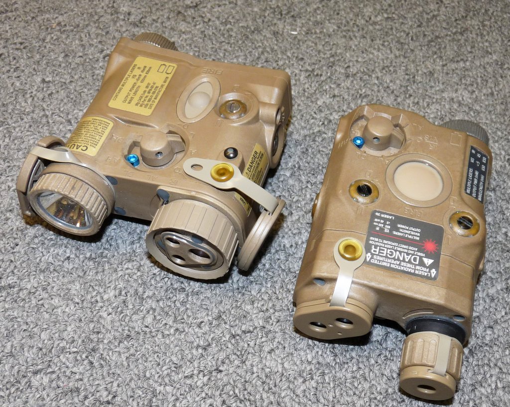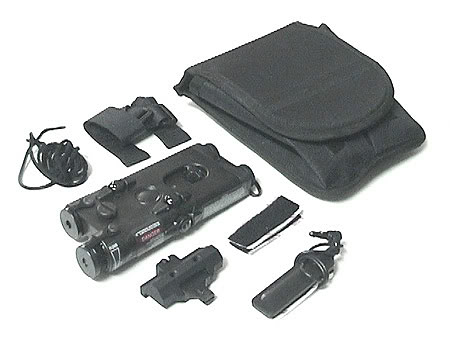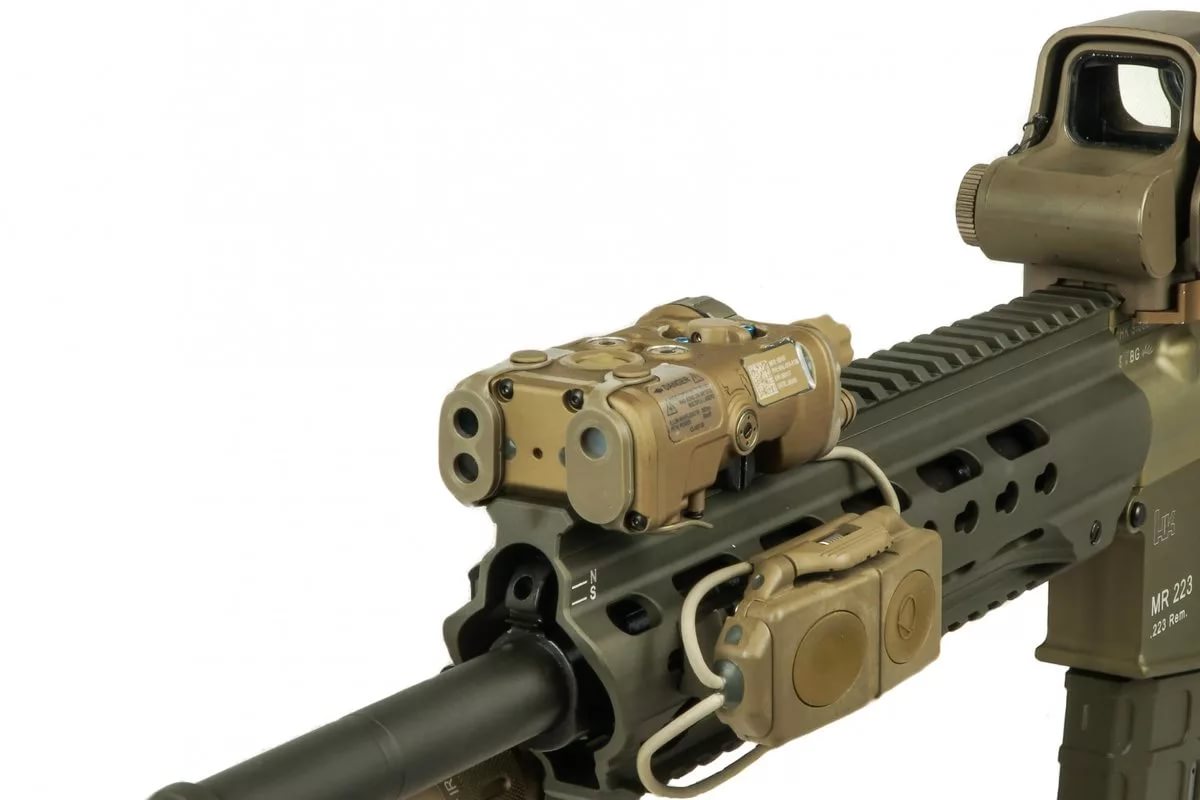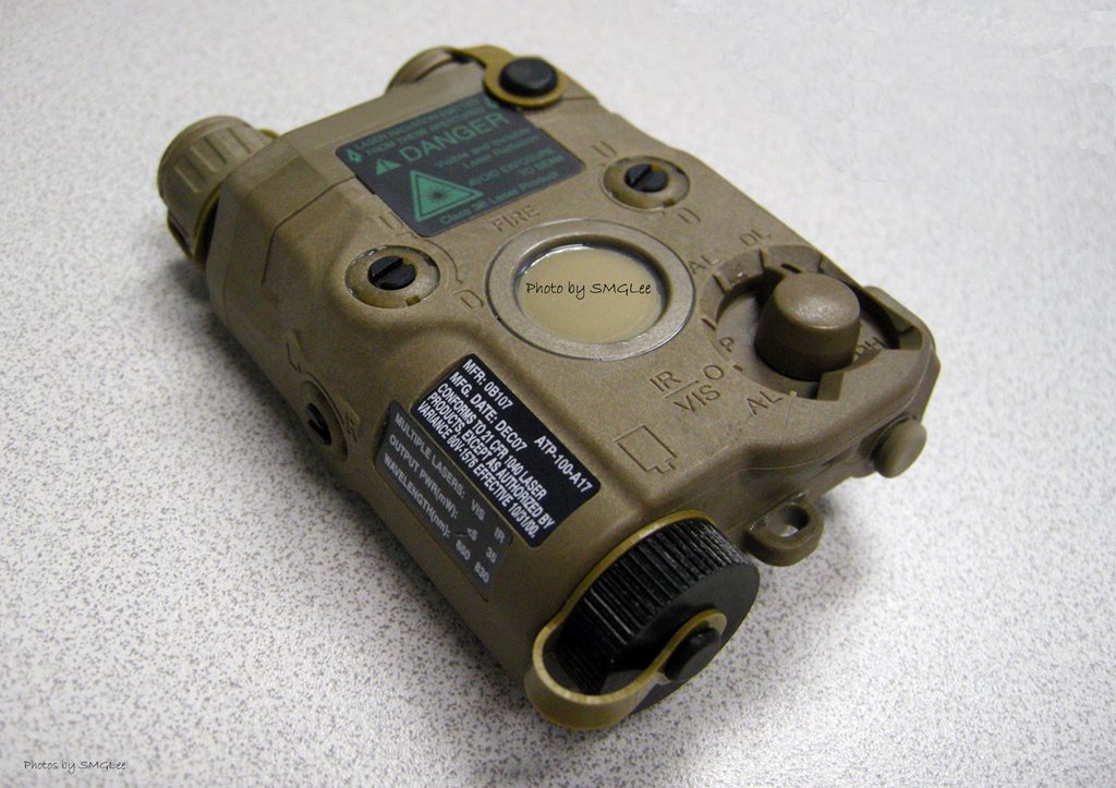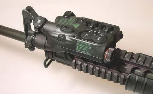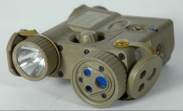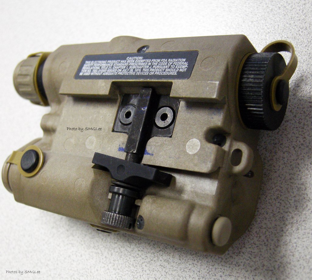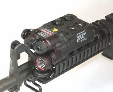 AN/PEQ-2 Target Pointer/Illuminator/Aiming Light(ITPIAL)红外激光指示器射程可达600m,可以直接安装在RIS/RAS护木上,也可以在普通的M16A2护木上使用。主要有两个功能,一个是发射红外激光进行目标指示或辅助瞄准,另一个是红外补光,增强夜视仪的夜视距离。在使用模式上,有低功能和高功能可供选择。该激光指示器被美军大量采用,在其他国家的军队(如加拿大的C7/C8)也有使用。