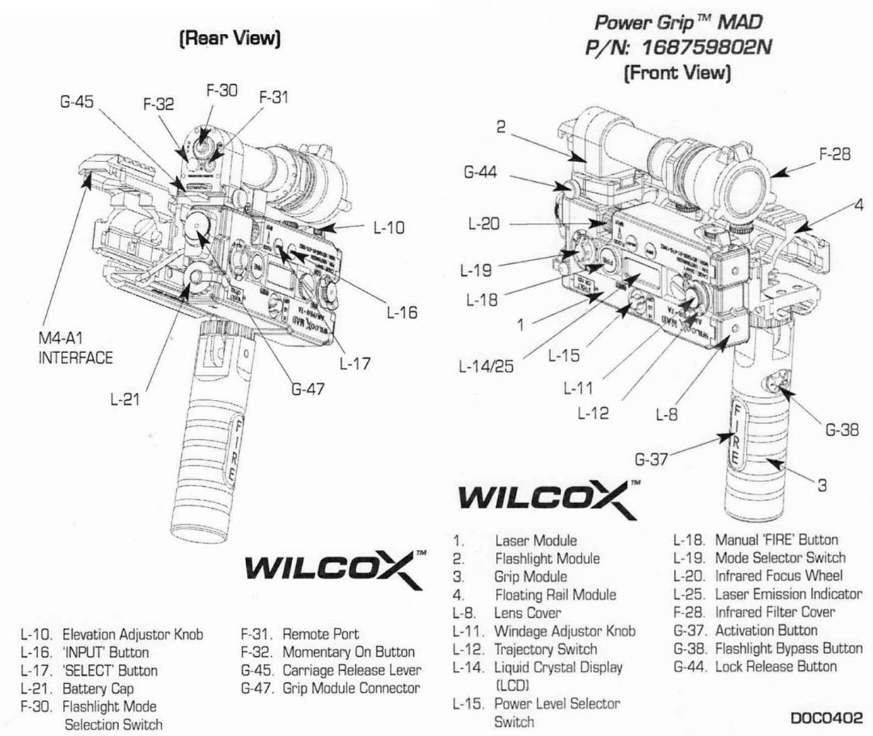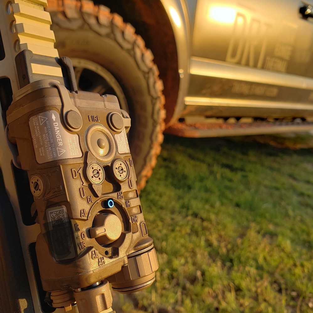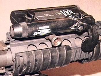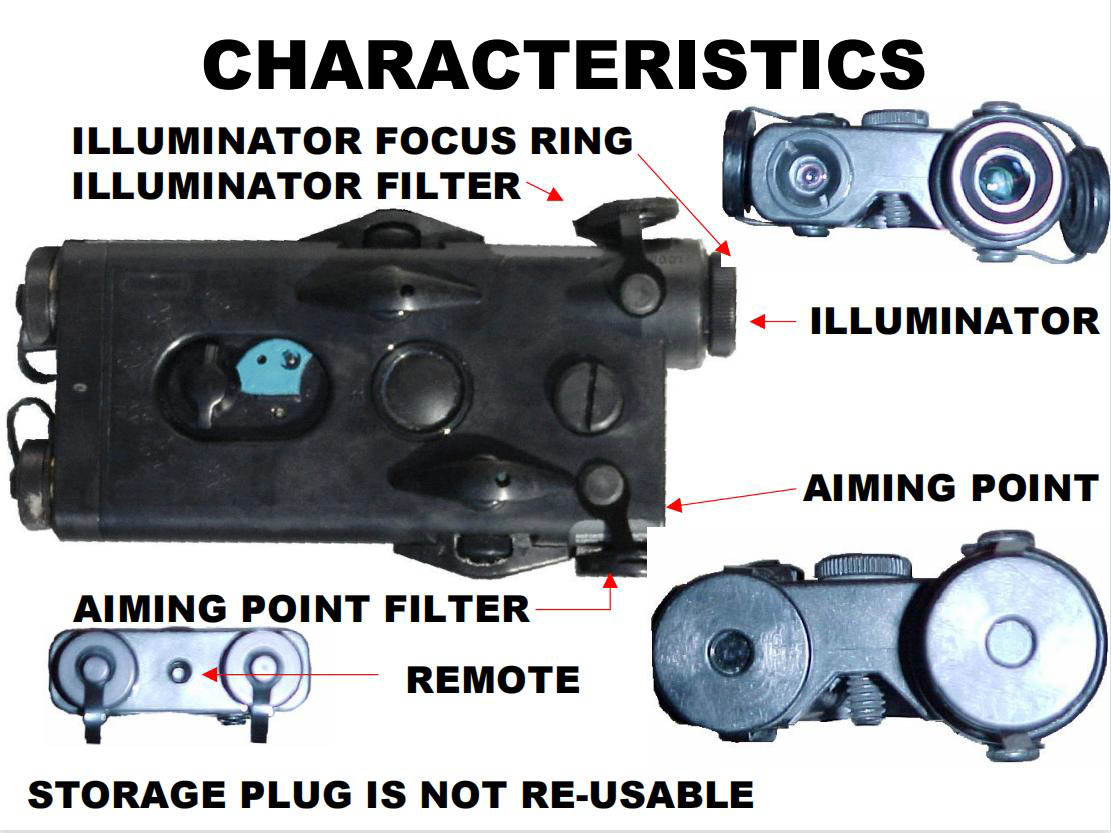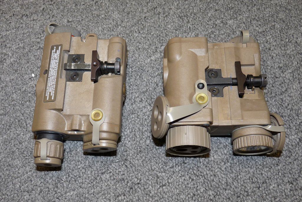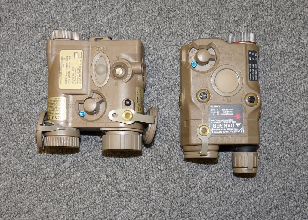 AN/PEQ-2 Target Pointer/Illuminator/Aiming Light(ITPIAL)红外激光指示器射程可达600m,可以直接安装在RIS/RAS护木上,也可以在普通的M16A2护木上使用。主要有两个功能,一个是发射红外激光进行目标指示或辅助瞄准,另一个是红外补光,增强夜视仪的夜视距离。在使用模式上,有低功能和高功能可供选择。该激光指示器被美军大量采用,在其他国家的军队(如加拿大的C7/C8)也有使用。